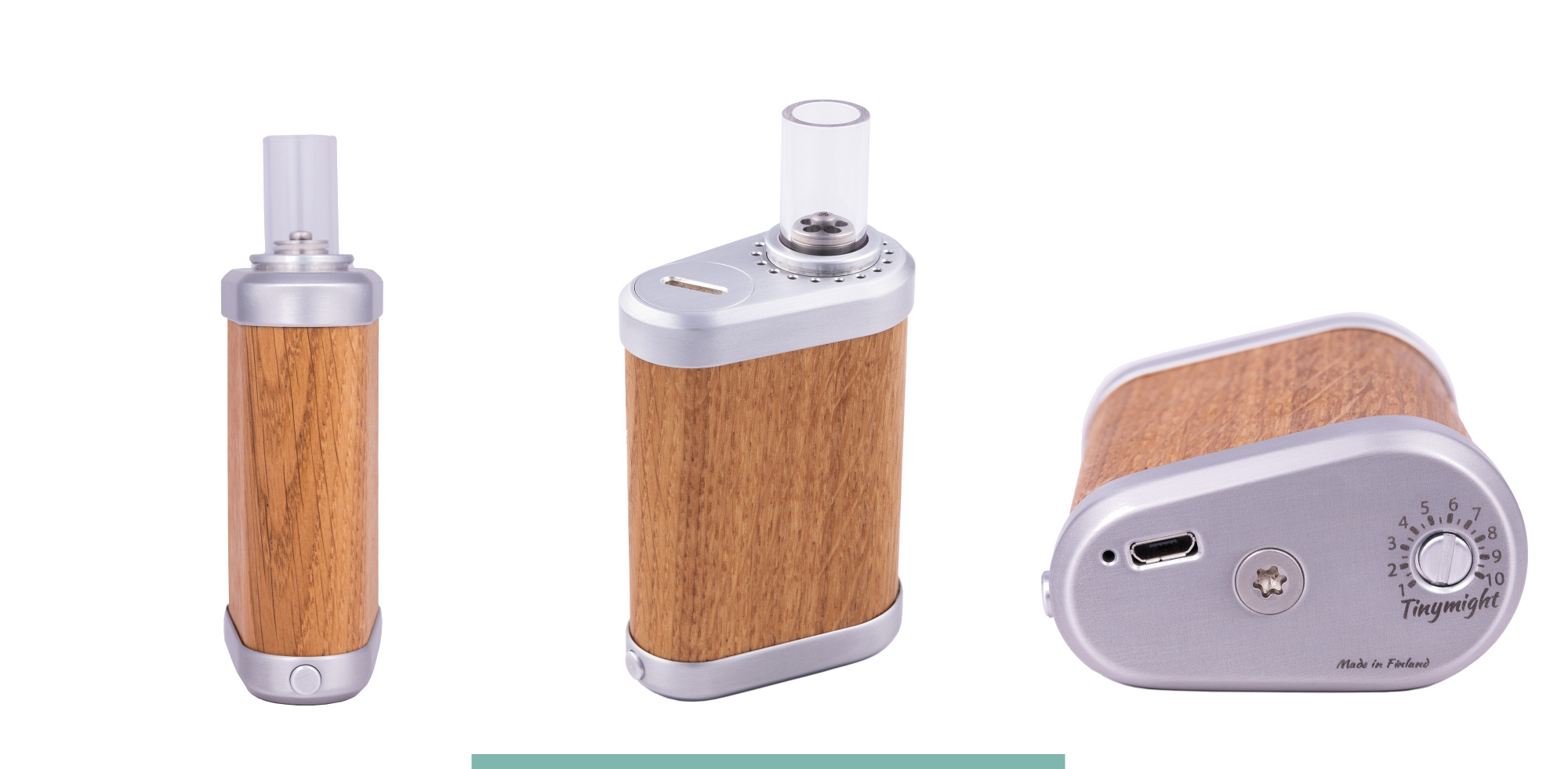 Solid oak, Stainless steel, Quartz glass, Aluminum